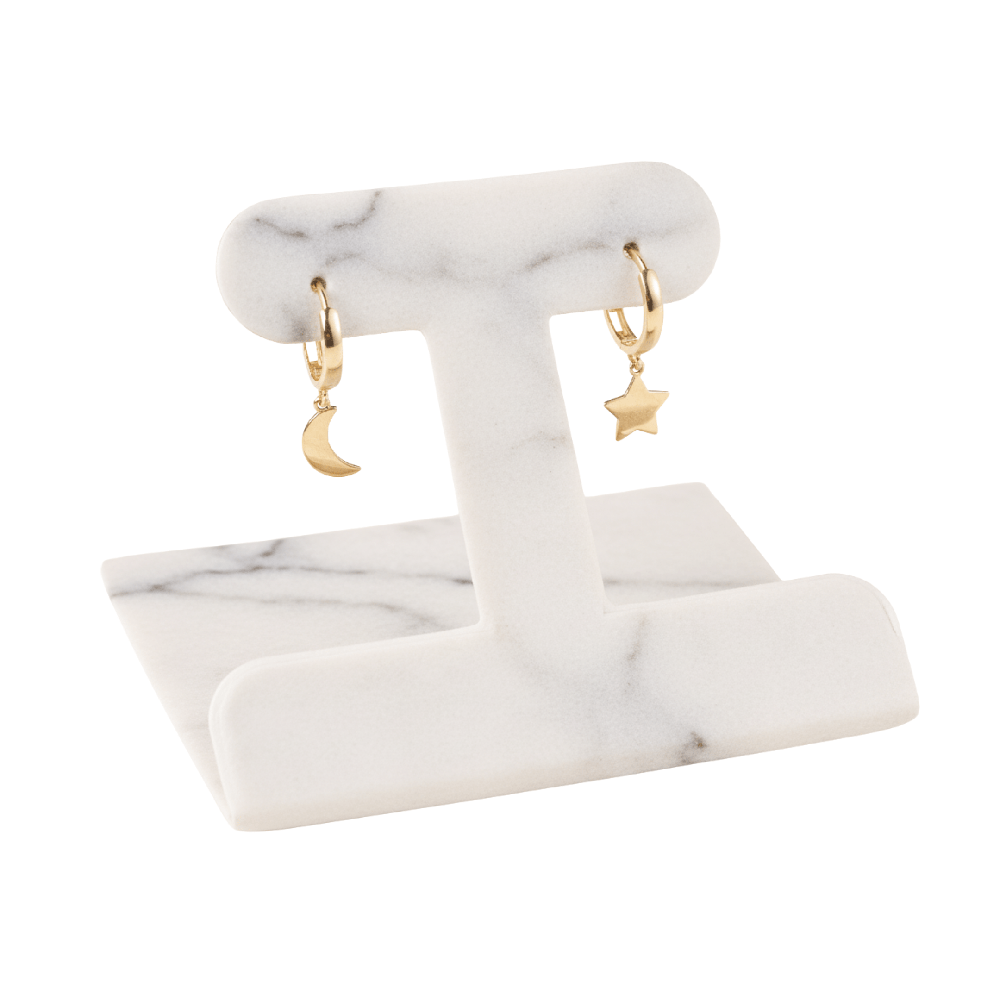 Aretes argollas en oro 14K con dijes de luna y estrella